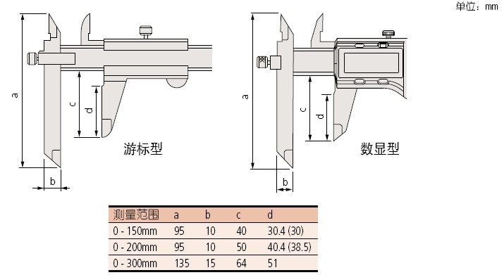 1 主尺量爪可以测量阶差断面和难以测量的工件的尺寸(使用偏置卡尺可精确测量如A,B,C等难以测量的尺寸)。
